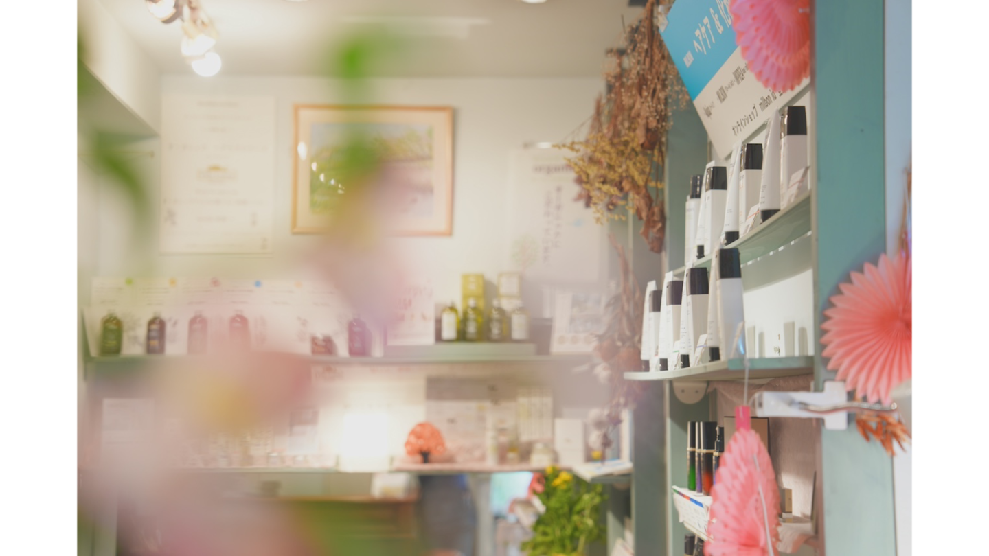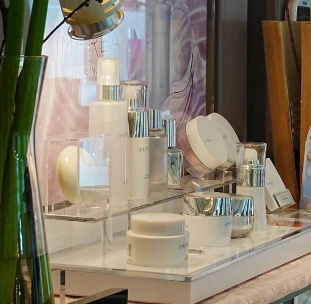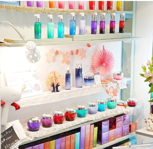 ミルボンプレミアムラインが、店内にディスプレイされています。「今回は、どれにしようかな?」髪のや肌の悩みから、今必要とされるアイテムをご提案いたします。